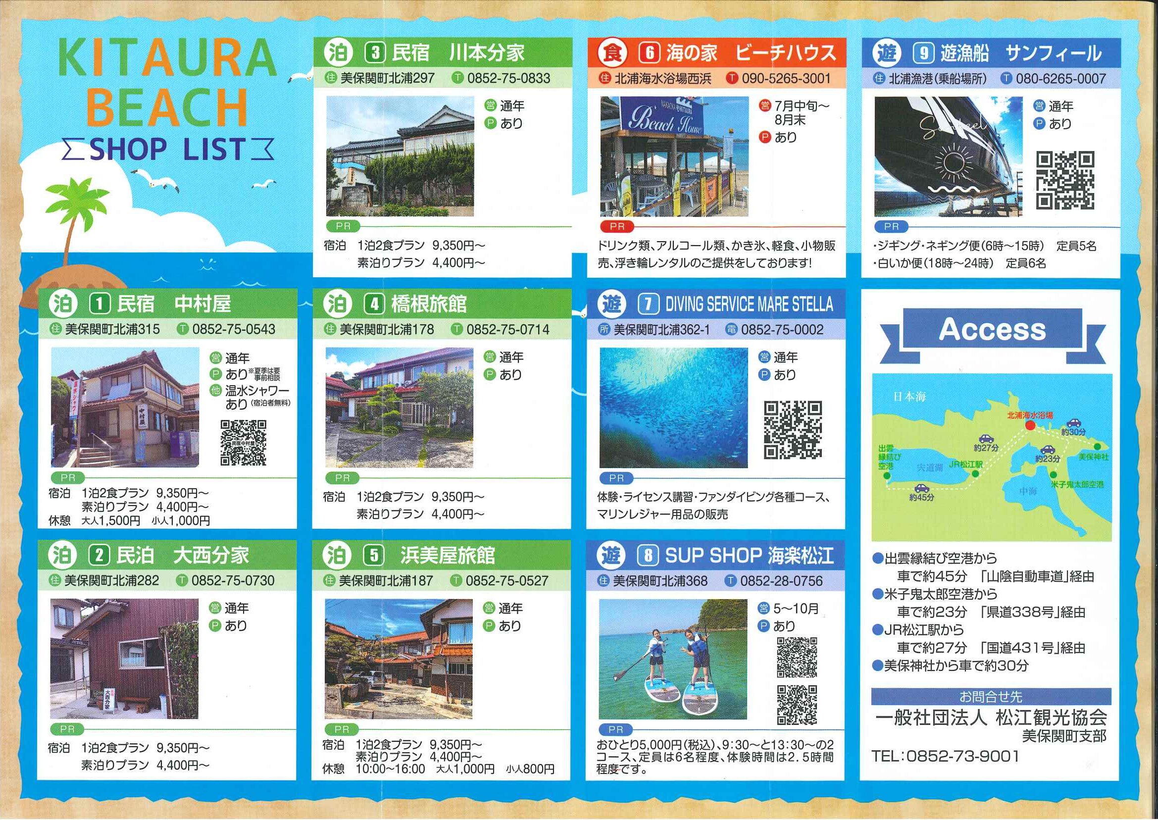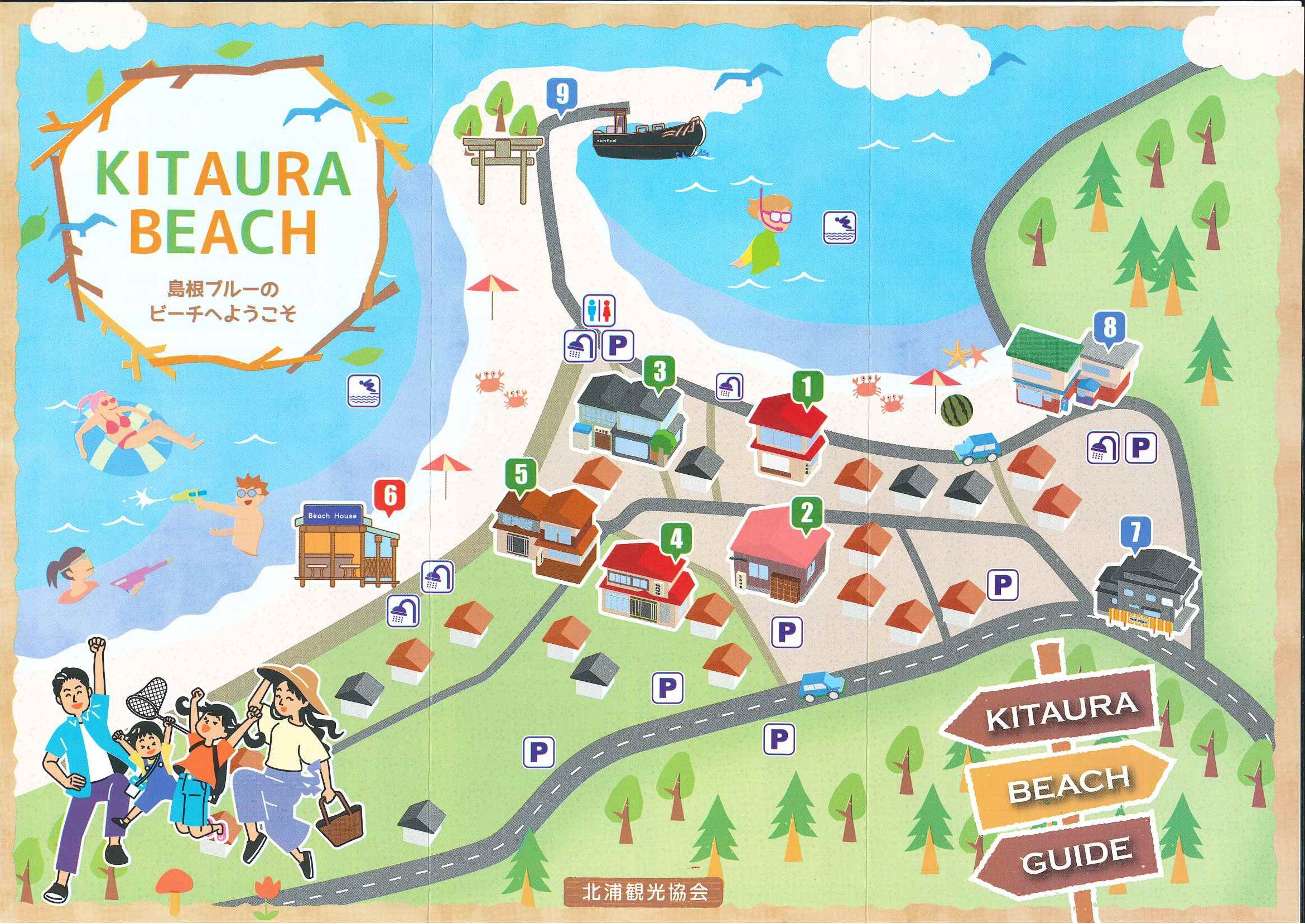 イベント 2025年7月17日 北浦海水浴場 美保関も暑い日が連日続いており、海水浴に来られるお客様も熱中症対策など準備をして、遊びに来てください。 透明度の高い綺麗な海「北浦海水浴場」では、公衆トイレ、有料シャワー、有料駐車場、海の家、民宿、レジャー施設があります! *7月21日(月)海の日は、東浜(地図中向かって右側の浜)にて、海上綱引き選手権大会が行われる為、混雑することが予想されます。(8時半頃から16時頃)