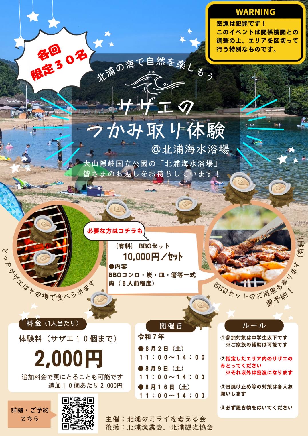 北浦海水浴場にて『サザエのつかみ取り体験!!』が開催されます!